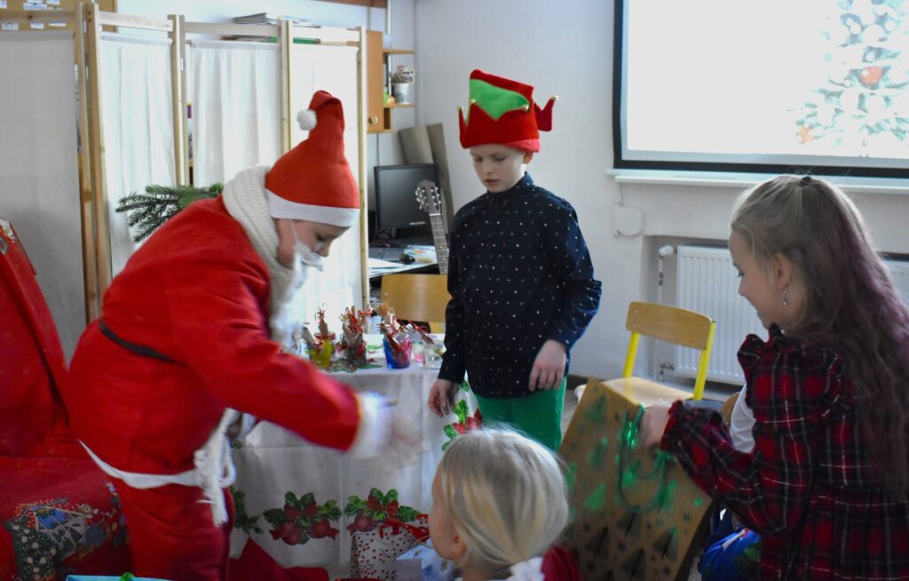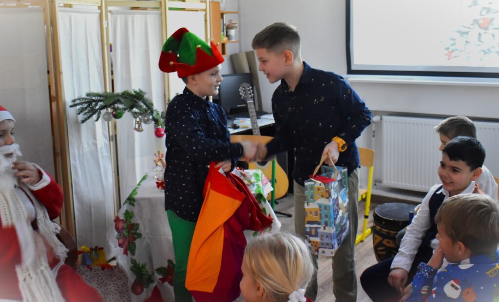 Na stołach najważniejsze miejsce zajmowały pierniki upieczone i udekorowane przez uczniów. Odwiedził nas też Święty Mikołaj z elfem i przyniósł własnoręcznie robione prezenty. ![]()