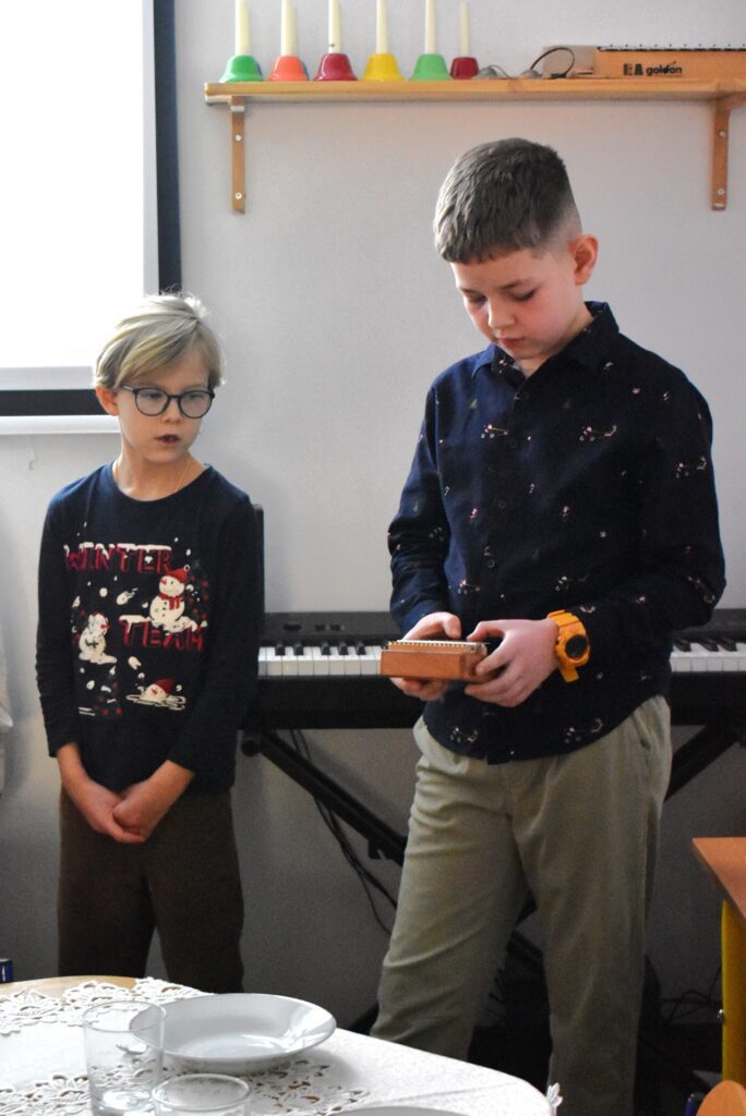 W naszej szkole świętowaliśmy wspólnie z rodzicami już w miniony piątek. Było bardzo miło. Trochę kolędowaliśmy, trochę graliśmy na instrumentach, trochę rozmawialiśmy… ![]()
