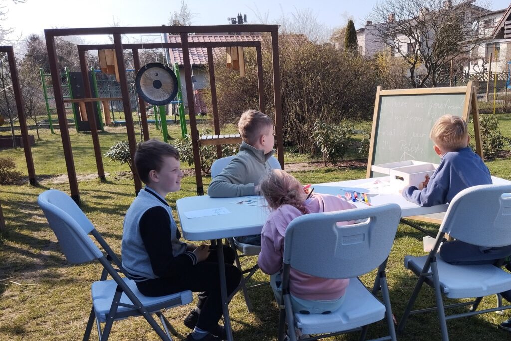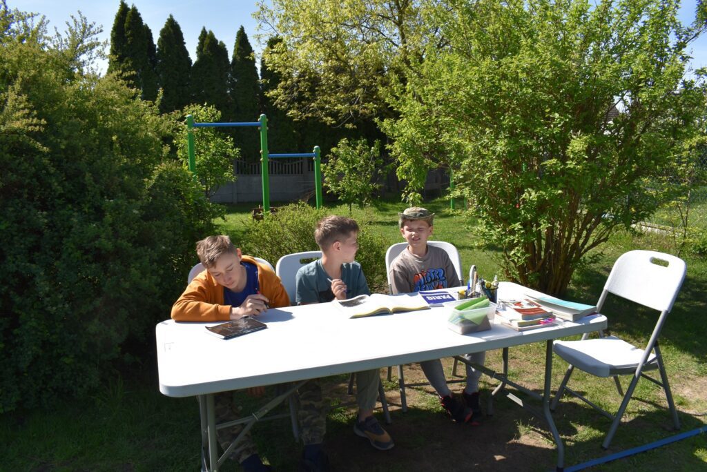 Lekcje prowadzimy w tym roku na dworze już od marca. Każdego tygodnia coraz częściej.