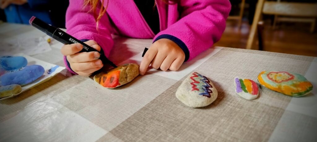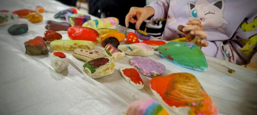 Uczestnicy warsztatu stworzyli własnoręcznie malowane, kamienne wizytówki, które opowiadały o ich pasjach, zainteresowaniach i marzeniach