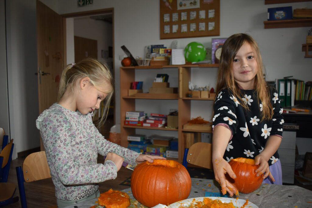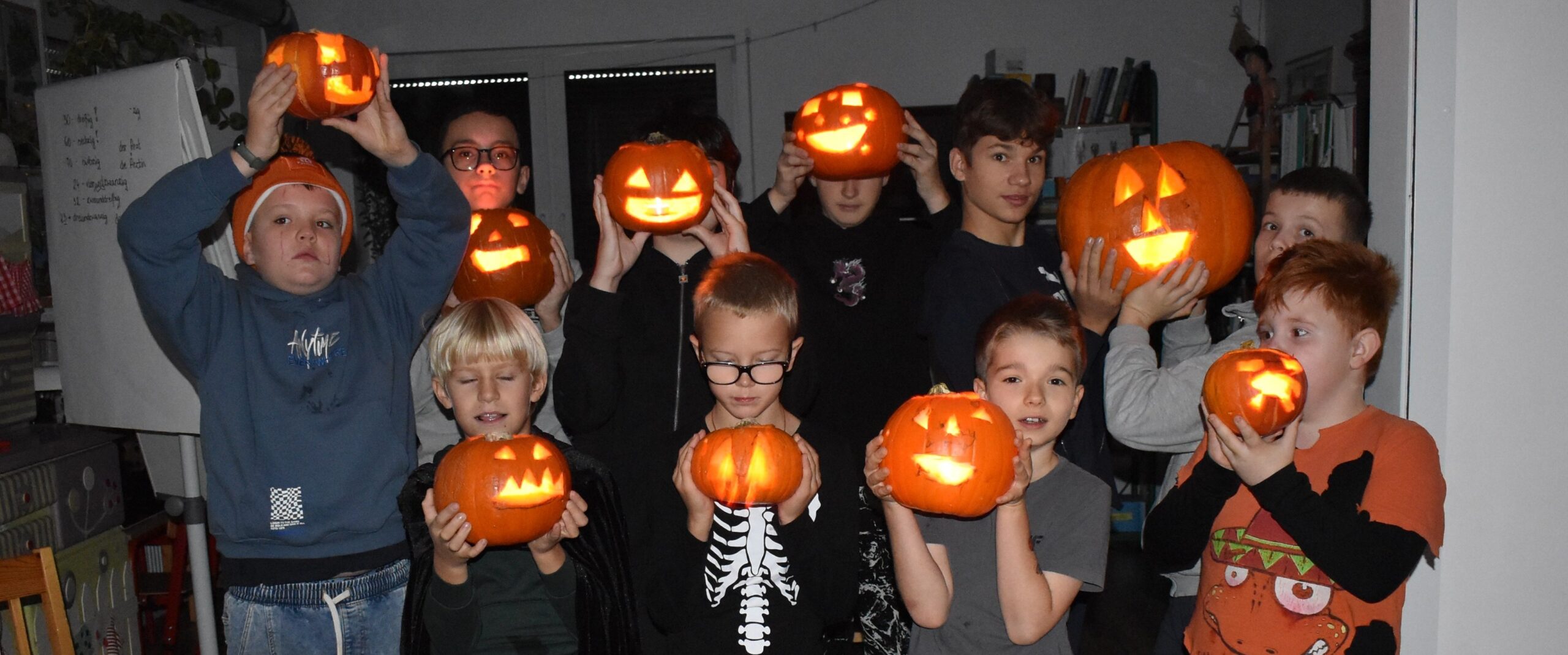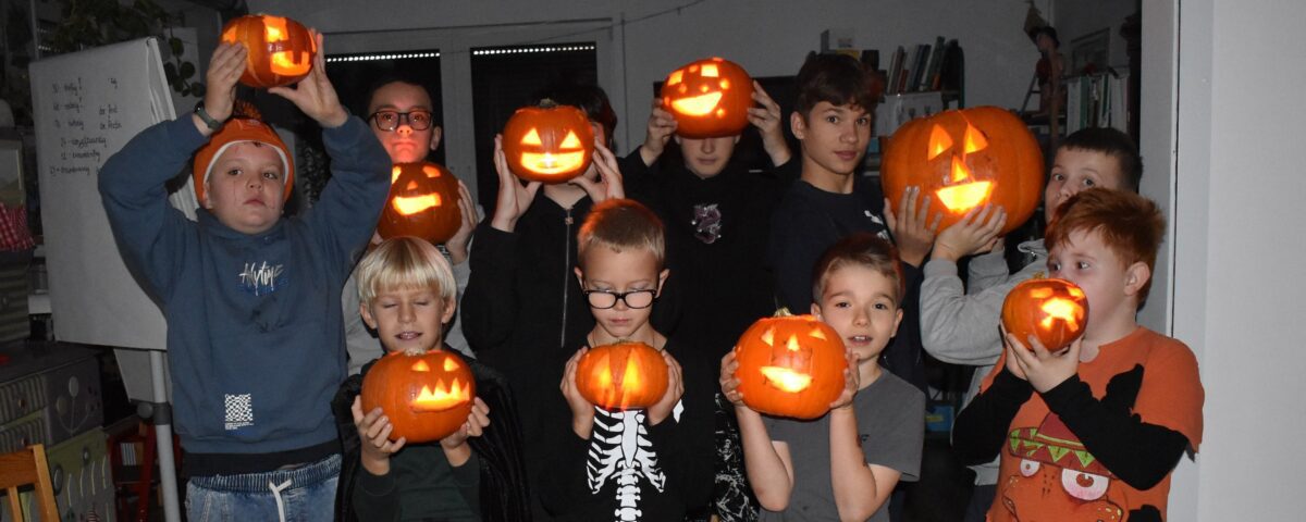 Z okazji Święta Dyni uczniowie drążyli swoje dynie, tworząc z nich fantastyczne lampiony — od uśmiechniętych po zupełnie upiorne! ![]()