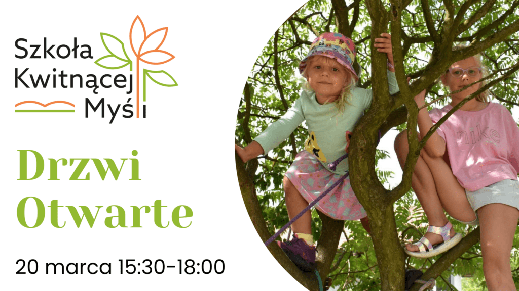 Drodzy mieszkańcy naszego miasta i okolic! Jeśli jeszcze nie poznaliście naszej szkoły – serdecznie zapraszamy na Drzwi Otwarte. Będzie okazja, żeby poznać całą mikro społeczność Szkoły Kwitnącej Myśli. Będzie można zadawać pytania, myszkować po ogrodzie, zobaczyć jak działamy projektowo.